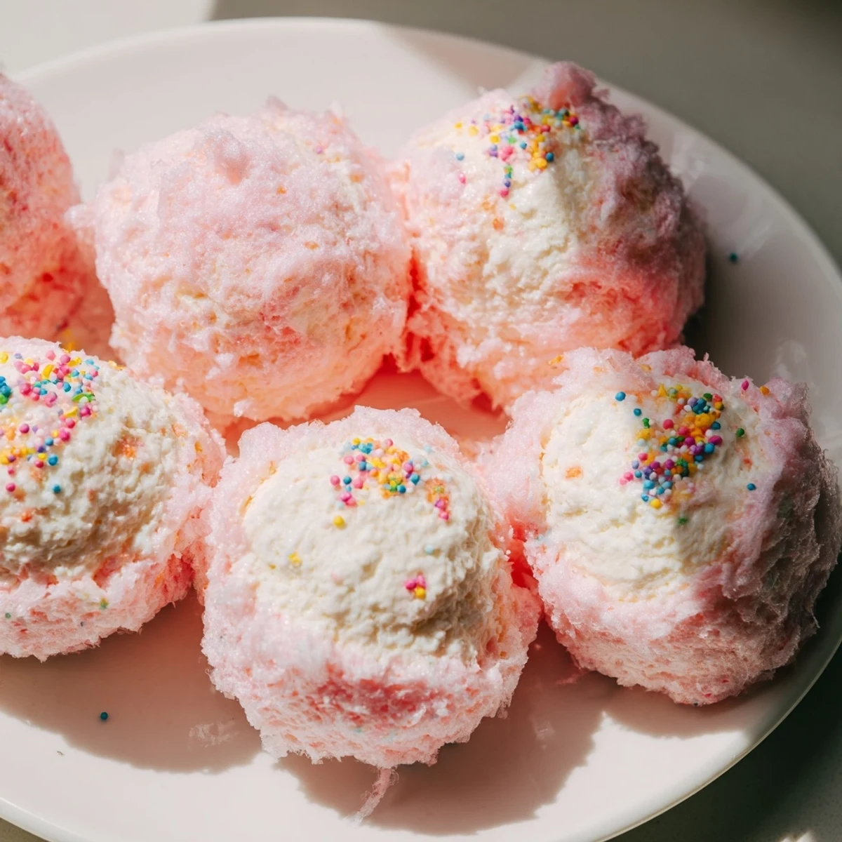 Set up a cotton candy bar where guests can wrap their own puff balls with different colors of cotton candy. They're perfect as individual plated desserts or passed around on vintage cake stands. Keep them chilled but not cold—the texture is best when the filling softens slightly.